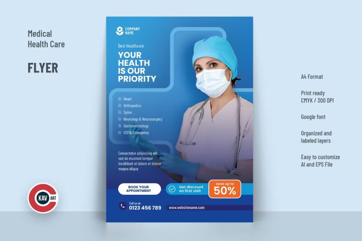 A creative professional flyer or poster template is perfect for promoting medical health care services with an elegant print-ready design. You can use this template for any other service as well, Whichever is suitable for your target audience. Fully editable and organized layers in flyer designs.