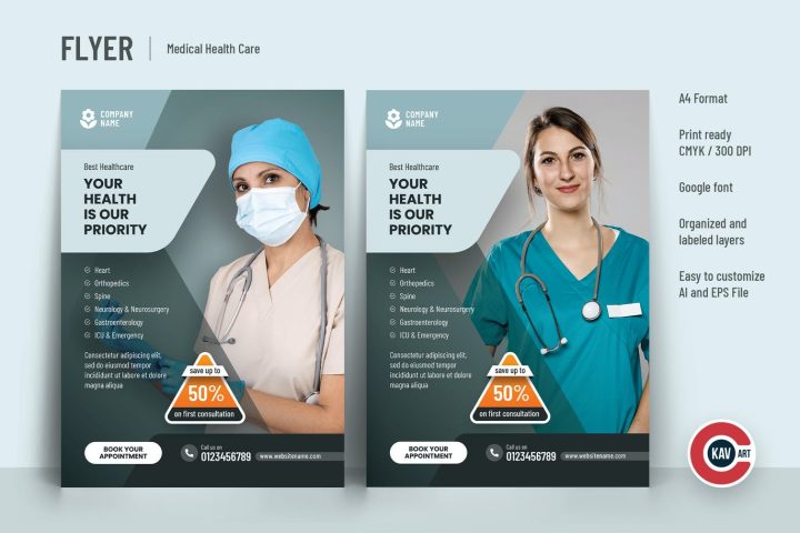 A creative professional flyer or poster template is perfect for promoting medical health care services with an elegant print-ready design. You can use this template for any other service as well, Whichever is suitable for your target audience. Fully editable and organized layers in flyer designs.