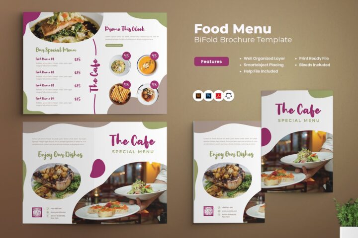 Food Bi-Fold Brochure Template is corporate business brochure or flyer template will help you to promote your any project purpose with elegant, modern, simple, minimalist and professional design. With professional design you can use this template for any kind of businesses, company, corporate and any marketing promotion.