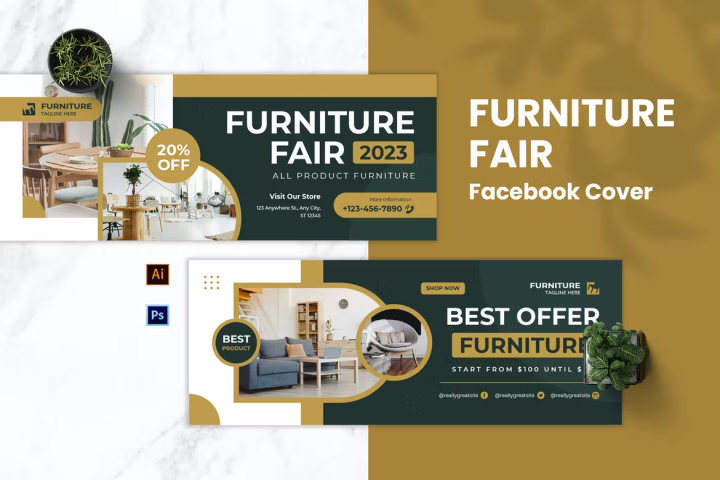 This Facebook Cover Set template has fully editable and customizable PSD and AI files. This Facebook Cover template also has creative style, and it’s suitable for your any purpose such as: furniture, interior, house and can be also used for any other publishing like marketing promotions and company profile.