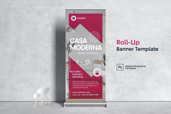 Furniture Roll-Up Banner Template – If you are selling furniture this is the best way to sell more. Overcome your competition and beautify your sales space with this wonderful roll-up banner. Getting the right design and information on your banner stand is so important when it comes to generating an impact. Take your project to the next level and unleash the possibilities.