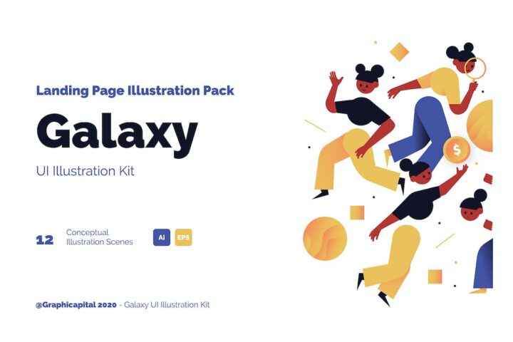 Galaxy Landing Page Illustration Pack is an illustration that perfect for your upcoming website, apps, landing page, and presentation page clipart/illustration project, with this you can create your own scene composition.