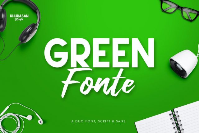 Green Fonte Font Duo, a handwriting script and sans nice font type. Green Fonte it’s perfect for namecard, poster, logo, magazine, cover, banner, tshirt and headers, or even large-scale artwork..