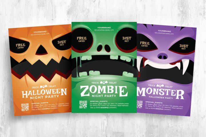 Halloween Flyer Template With 3 Monster Characters for Photoshop & Illustrator