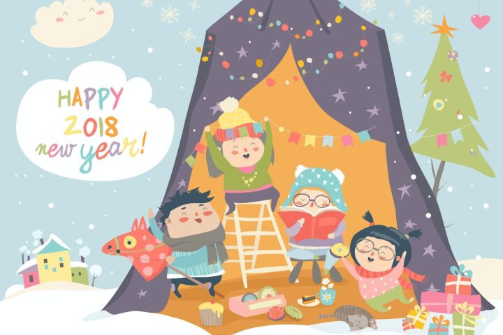 Vector, Christmas, Xmas, Children, Winter, Christmas, Tree, Holiday, Wigwam, Marquee, Tent, Snow, Decor, Flags, Snowflakes, gfx