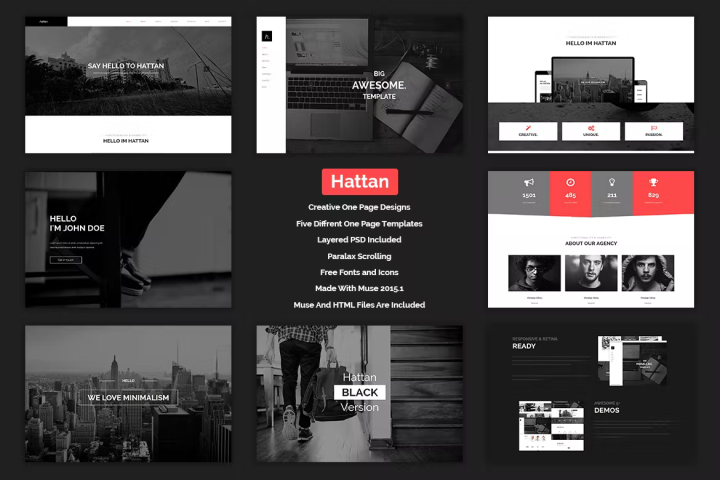 Adobe, Muse ,Agency, Corporate ,Creative ,Hattan ,Multipurpose ,One ,Page ,Parallax, Photography ,Responsive ,Design ,Business, Bundle, gfx