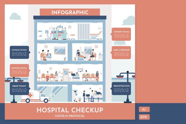 This is a Flowchart / Timeline Infographic to inform you about Hospital Process for Check up. This infographic template are fully editable and easy to use.
