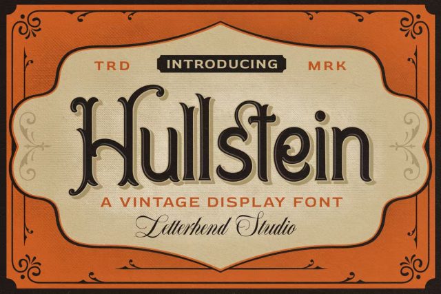 Hullstein is a ornamental serif with classy and classic look with vintage feel, inspired by 60s and 70s signages. This font perfectly made to be applied especially in logo, and the other various formal forms such as invitations, labels, logos, magazines, books, greeting / wedding cards, packaging, fashion, make up, stationery, novels, labels or any type of advertising purpose.