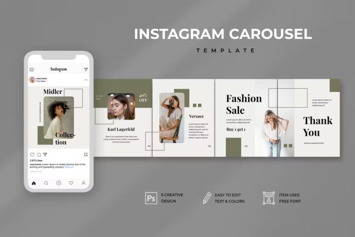 Welcome to professional, clean, modern, and elegant posts for Instagram Carousel. Boards of inspiration, portraits, Shopping Lovers, and much more in one set! amazing posts for your promotion!