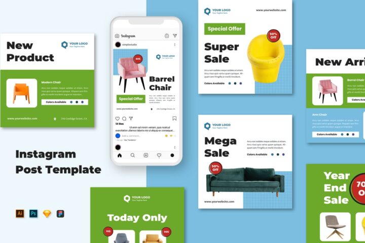 Furniture Interior social media banner Instagram post templates is designed to make it easy to create all of your social media posts, giving you more time to make what you do best look even better!