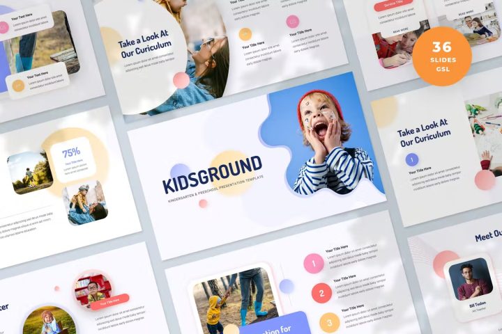 If you are looking to create a modern and clean presentation to wow your audience, then look no further. The Kidsground Presentation Template for Google Slides contains 36 sleek looking slides that can be easily edited to suit your any professional and business need.