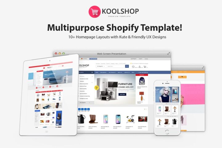KoolShop is a modern, clean and professional multi-purpose Shopify theme, It is fully responsive, it looks stunning on all types of screens and devices. It is super for fashion shop, digital shop, accessories shop, food shop, devices shop, household appliances shop or any other categories.