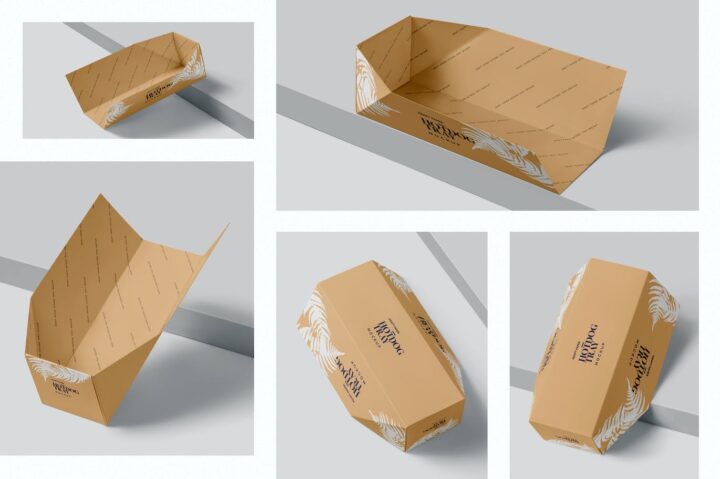 Brown card paper packaging tray mockup showing customizable inner and outer side.
