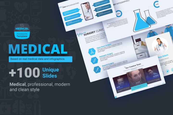 “Medical powerpoint template” contains +100 free slides for medical and healthcare purpose:
