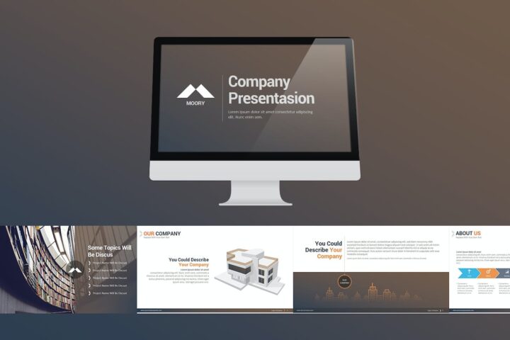 Moory Company Powerpoint Presentation This modern powerpoint is perfect for your corporate and business presentations. All elements are easily editable and customizable to your needs.