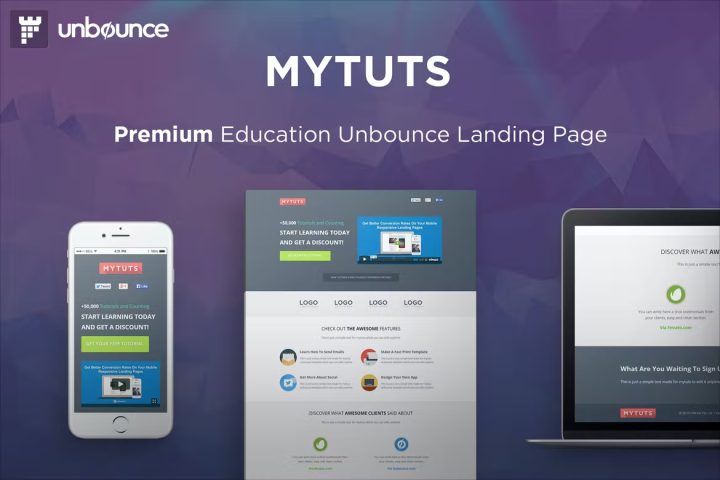 “MyTuts” is an eCourse & Education Landing Page Template for Unbounce.com, with a lot of features, and clean & modern design, you can make an awesome & high conversion landing page with a form in minutes.