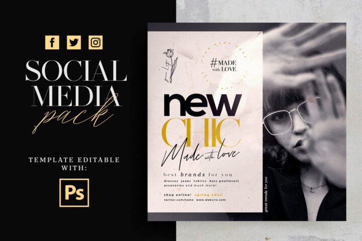 New Chic Social Media Pack Perfect for the promotion of Shops, Boutiques, Fashion Shows, Events, Birthday, Festivals, Invitations, Clubs, Concerts, Parties, Musicals, Theaters, or Whatever you Want!.
