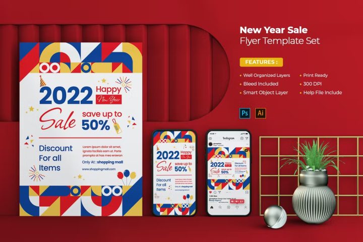A set of New Year Sale Flyer – Instagram Post & Stories is comes 3 awesome quality print template designs ready for your services, sells, products, campaigns. Each AI & PSD files are layered and fully organized. The package also contains a help file & You are free to customise this design however you wish and use in both personal and commercial projects.