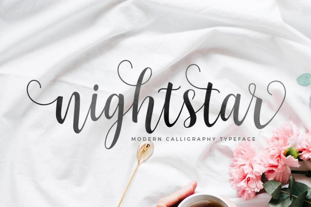 Nightstar Script – a new fresh & modern script with a handmade calligraphy style, decorative characters, and a dancing baseline! So beautiful on invitation like greeting cards, branding materials, business cards, quotes, posters, and more!