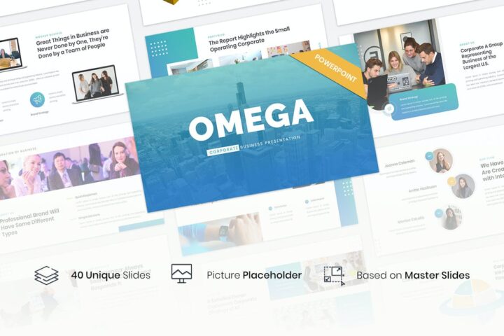 Omega – Corporate Business PowerPoint Template is suitable for presenting all things related to corporate, but this presentation can be modify related to business purposes. This Presentation can be used for any type of presentation: Business, Portfolio, Company Profile, Multipurpose, Creative Agency, and also can be used for Custom Production. There are 40 unique, creative and modern slides. Easy to change colors, modify shapes, text & charts. All shapes are editable. All pictures in the presentation can easily be inserted in just one click.