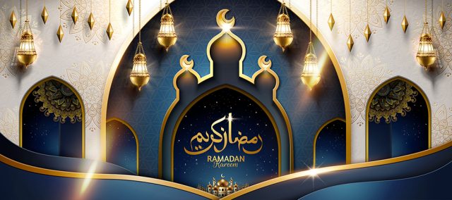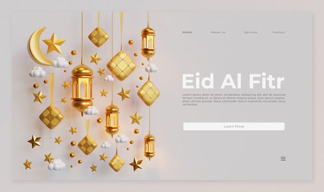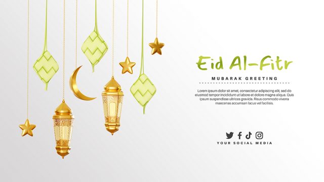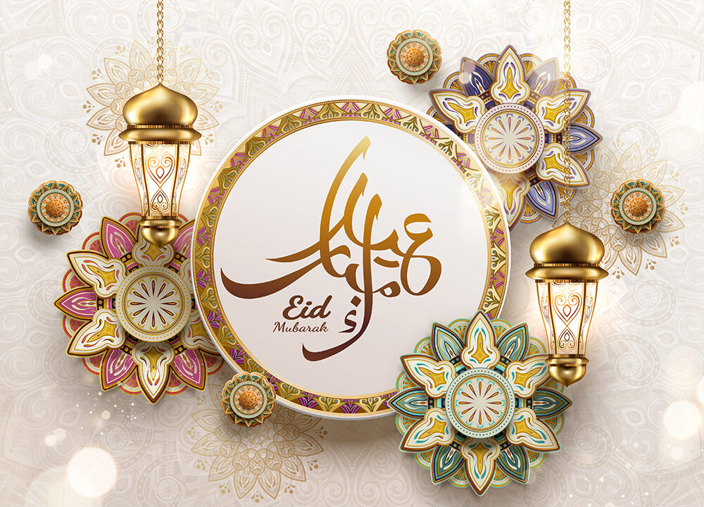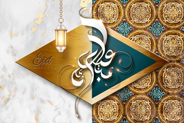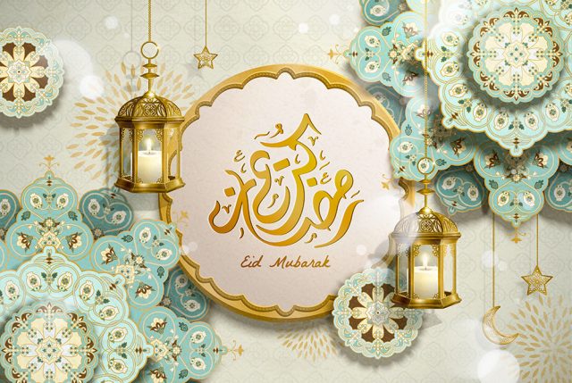 beautiful floral arabesque pattern hanging fanoos with golden eid mubarak