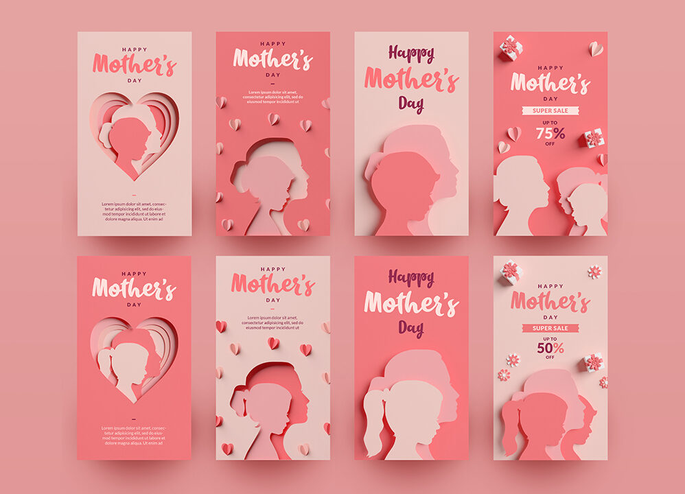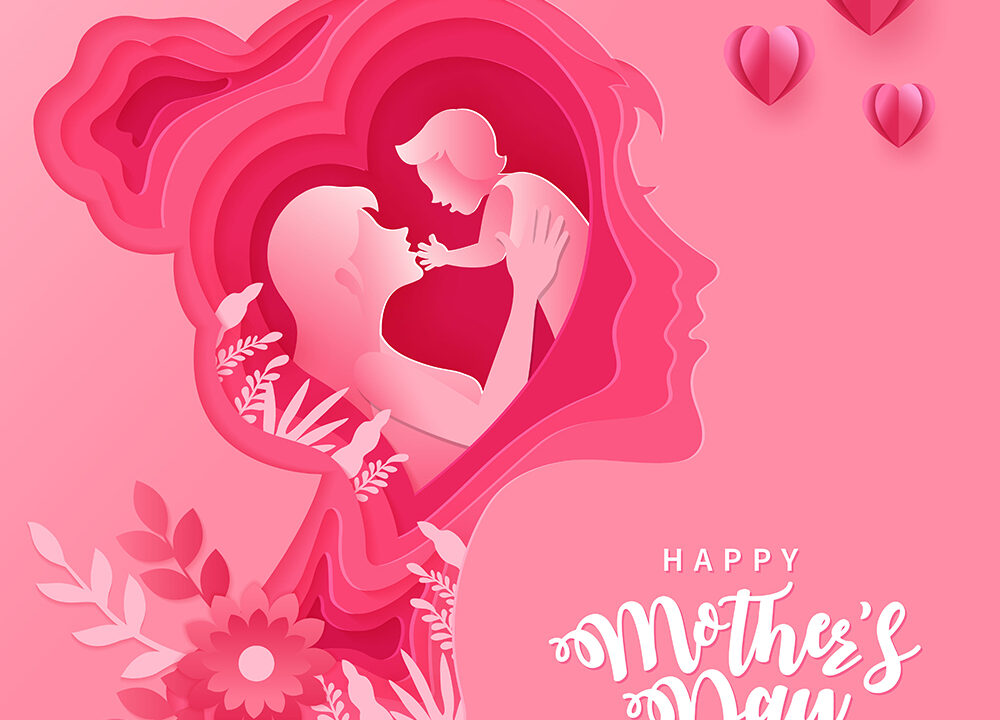happy mother s day greeting card illustration mother baby inside paper cut woman head silhouette