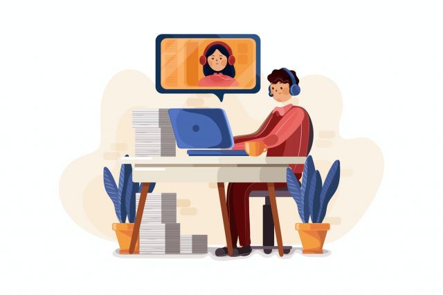 Male employee busy in online meeting