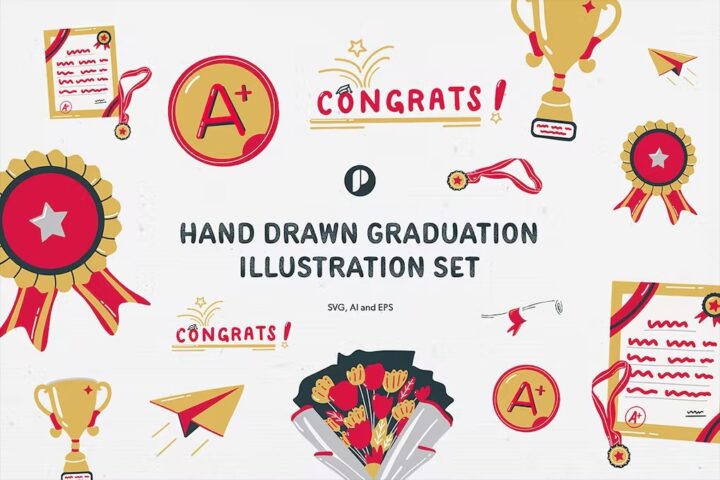Hand Drawn Graduation Illustration Set