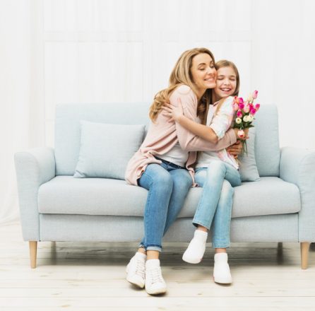 Mother and daughter embracing each other