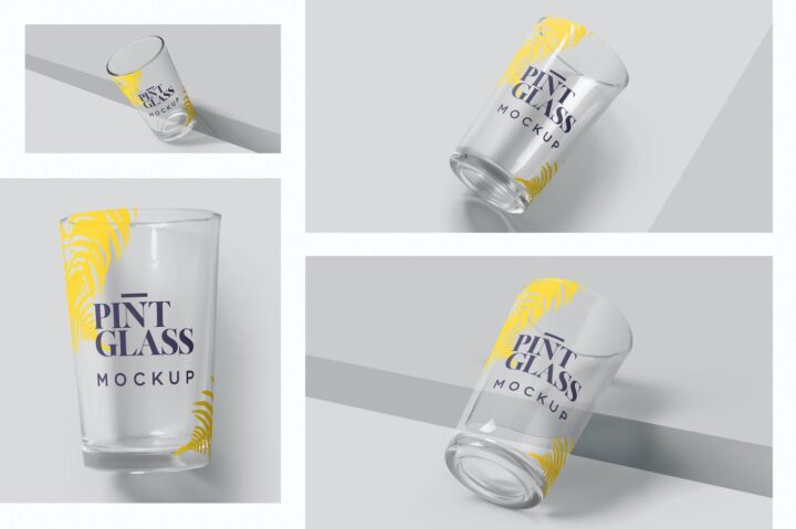 Presenting fully customizable pint glass printing mockups to present your company branding designs and artwork on transparent glass. You can easily change the design of these glass mockups using smart object option. Moreover, you can take help from well-organized layers to customize the shadows, effects and background.