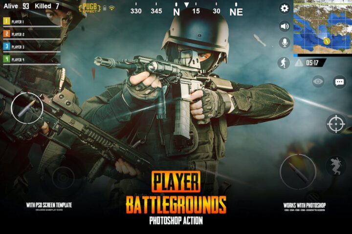 Player Battlegrounds Photoshop Action – is a Photoshop Action with PSD Templates include GamePlay Screen Icons and Buttons to get a cool and casual style of the famous Game P.U.B.G , You can use it to create photo manipulation artworks.