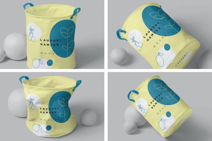 Premium quality polyester laundry hamper mockups offering 4 different PSDs to show your front, back, side and bottom design. All mockups are captured from different angles to show every single detail of your design. Furthermore, all PSDs have smart layers that enable you to customize the design, shadows, effects and background with a few clicks.