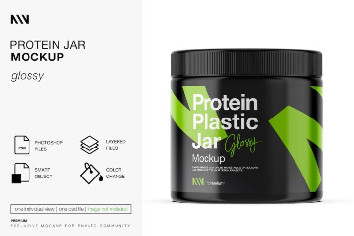 Present your design with this “Protein Plastic Jar” mockup befrore printing. The file includes seperate layers for the color objects and background. Smart layer for the label helps to apply your design. Premium quality and simle to use.