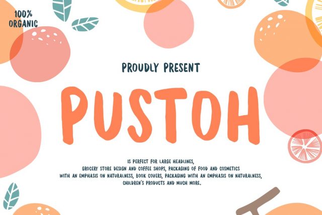 Pustoh is a forganic typeface, very suitable to use on many of your design projects such as Headlines, Signage,restaurant menus , Book Covers, , Packaging, Logotype and more.