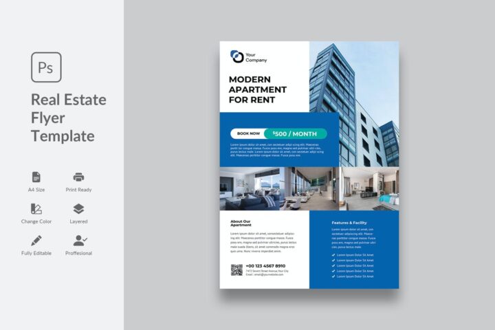 Real Estate Flyer Template: Templates that are designed with a minimalist and modern concept can be used for your business promotion. You can do customization easily.