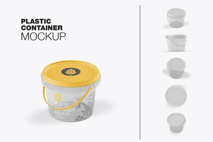 Roud Plastic Container with sticker Label Mockup