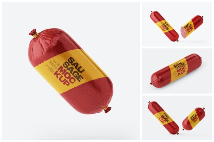 Grab this gorgeous new Sausage Chub Mockup Set with 4 scenes, 4k backgrounds, and trendy packaging design. This mockup bundle includes a total of 4 packaging mockups that can use for sausage, hum, meat, wurst, chicken branding, and packaging designs.