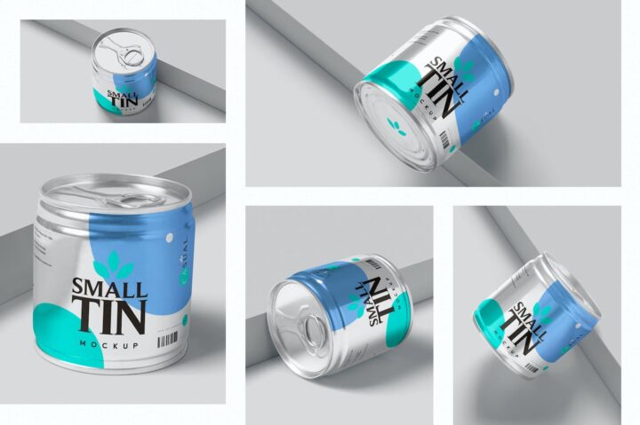 These small beverage tin can mockups are present as drink packaging cans but you can also use these for other tin packaging designs. You can showcase your food packaging designs as well. These mockups have smart object option which you can use for your design insertion. You can also take benefit of its well-named layers for customizing light effects, shadows and background.