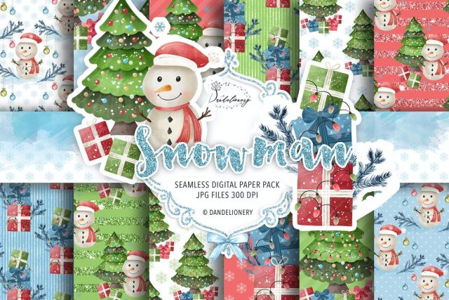 Happy Christmas Snowman digital paper pack, christmas, branches, christmas pattern, winter mood, snowflakes, holiday, snow, winter, star