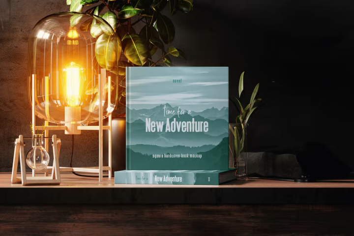 Mockup, Book ,Hardcover, Square, Cover ,Table ,Branding ,Workplace ,Diary, Scene, gfx