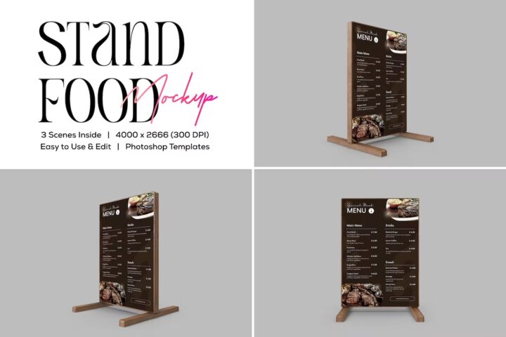 A mockup is an editable template that you can use to display a replica/model of your final product: in the graphic design field, it is used to offer your clients a very detailed preview of what they ordered in this case. Therefore we provide tools to make it easier for you to make the Stand Food Mockup.