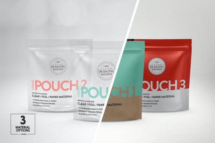 Clear Standing Zip Pouch with Foil or Paper Options Packaging Mockup v.1