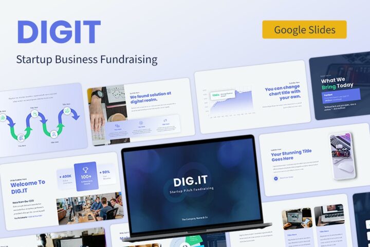 Digit is a Startup Business Fundraising Google Slides template for the modern Entrepreneur. It’ll allow you to present an awesome and professional startup / technology business pitch deck in less than 3 minutes! This template can be used not only to create Pitch decks for startups, but also to design and promote your startup company to an audience at any event or meeting.