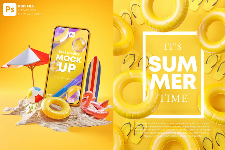 Phone, Sand, Mockup, Summer, Yellow ,Minimal, Screen ,Smartphone, Time ,Holiday, 3d ,Beach ,Poster, Sunny ,Tropical ,gfx
