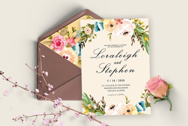 Floral Wreath Wedding Invitation Card