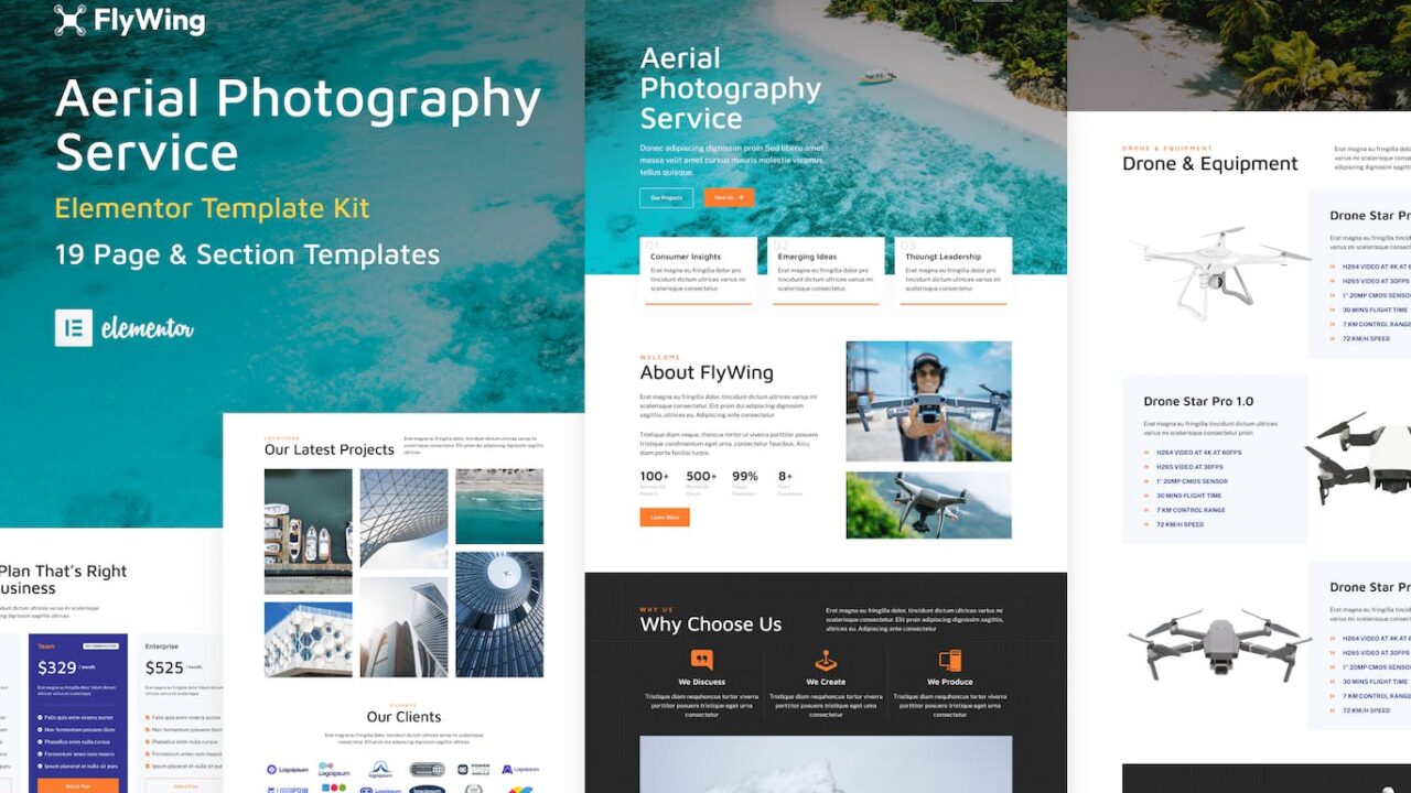 FlyWing – Drone Aerial Video & Photography WordPress Elementor Template Kit