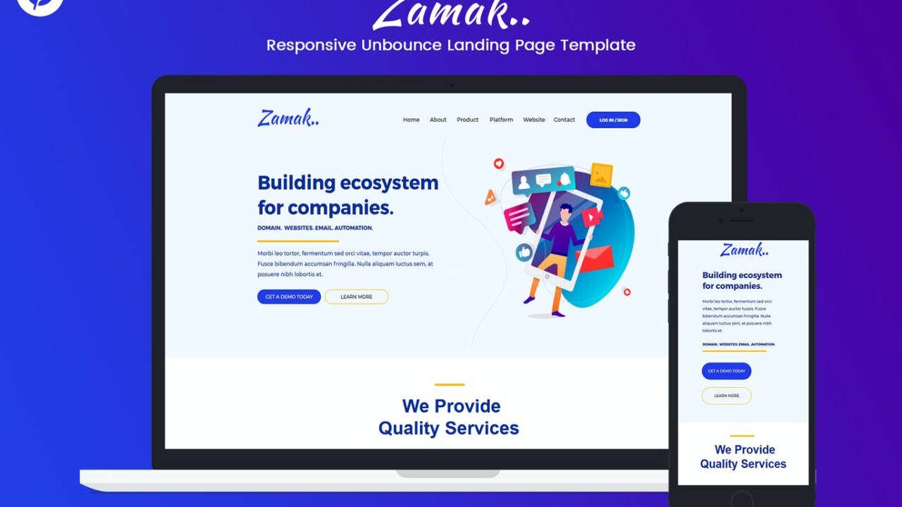 Zamak Responsive Unbounce Landing Page Template
