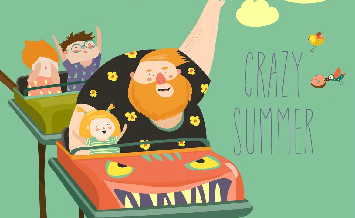 Daddy with kids riding roller coaster