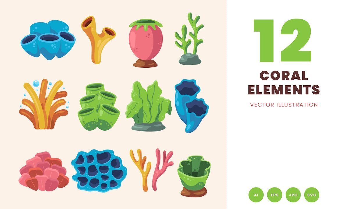 Flat Sea Coral Element Illustration