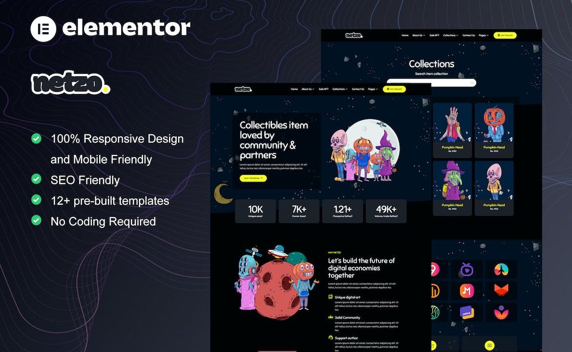 Netzo – NFT Portfolio Elementor Template Kit